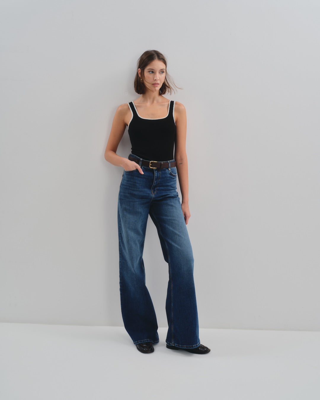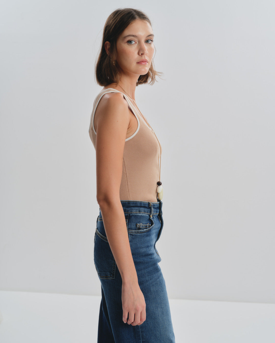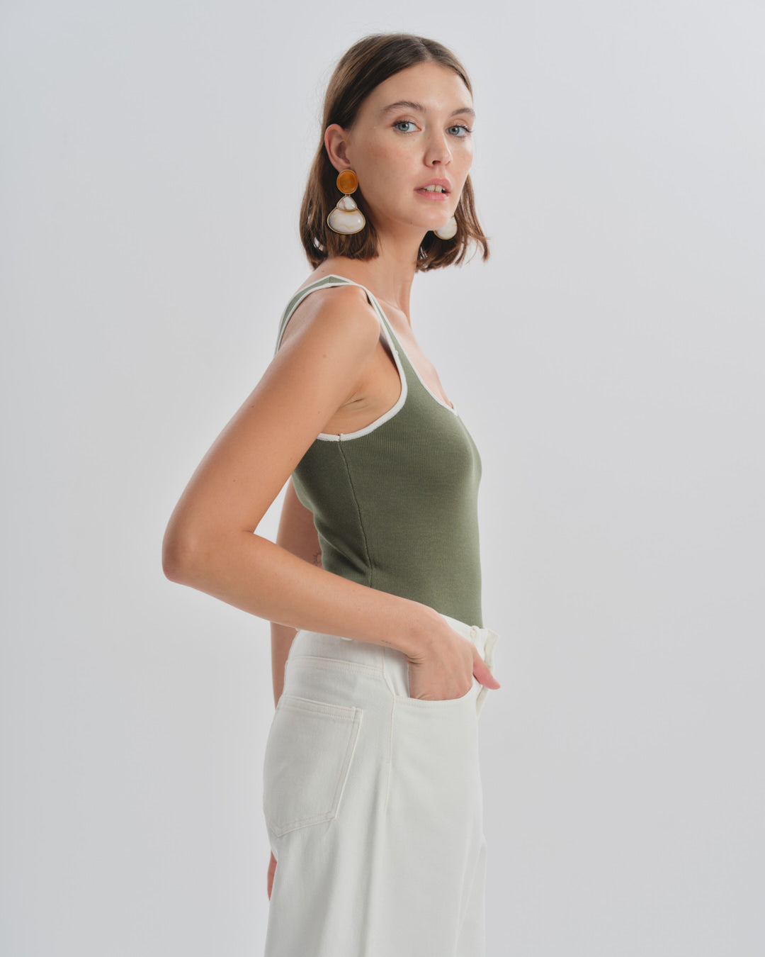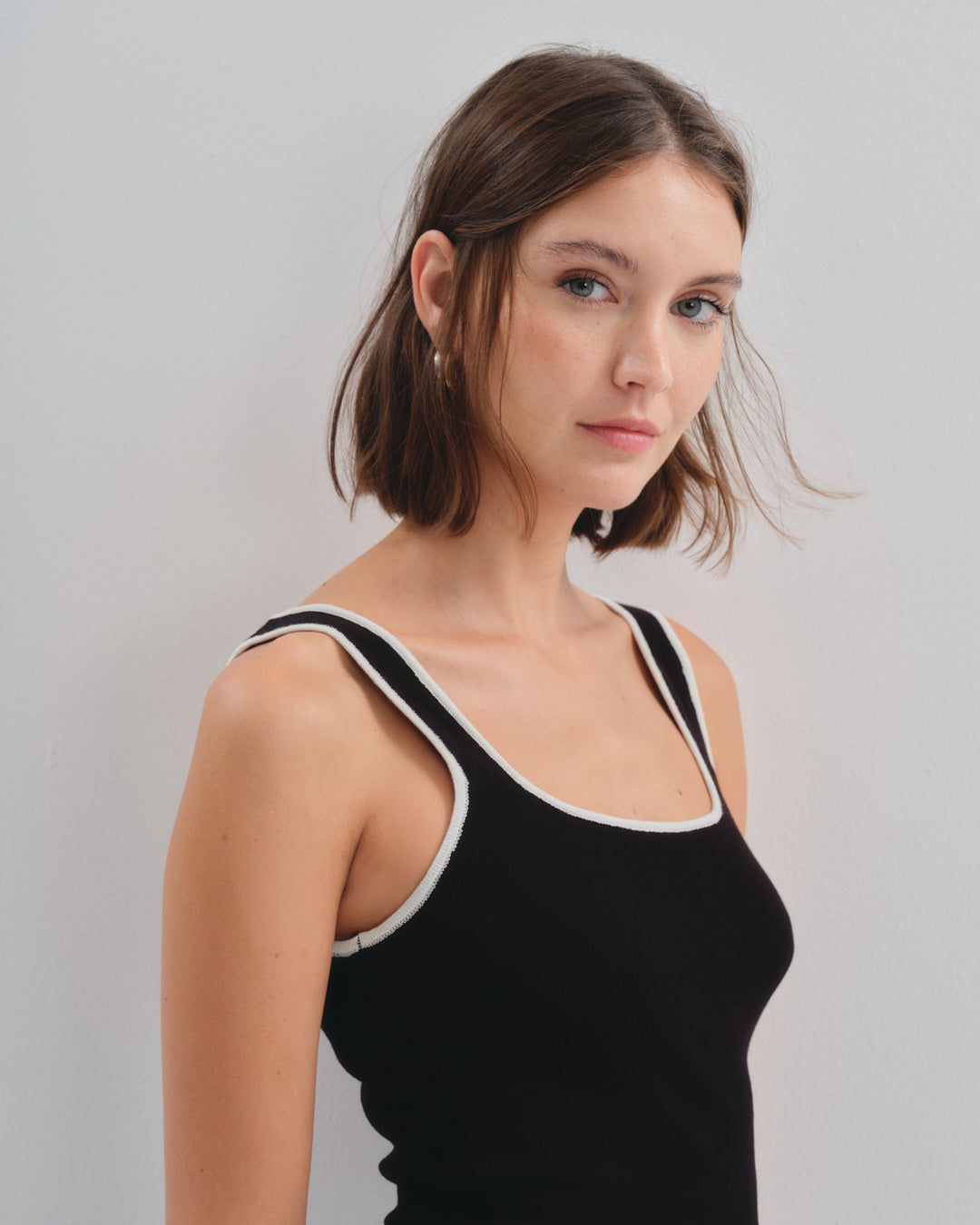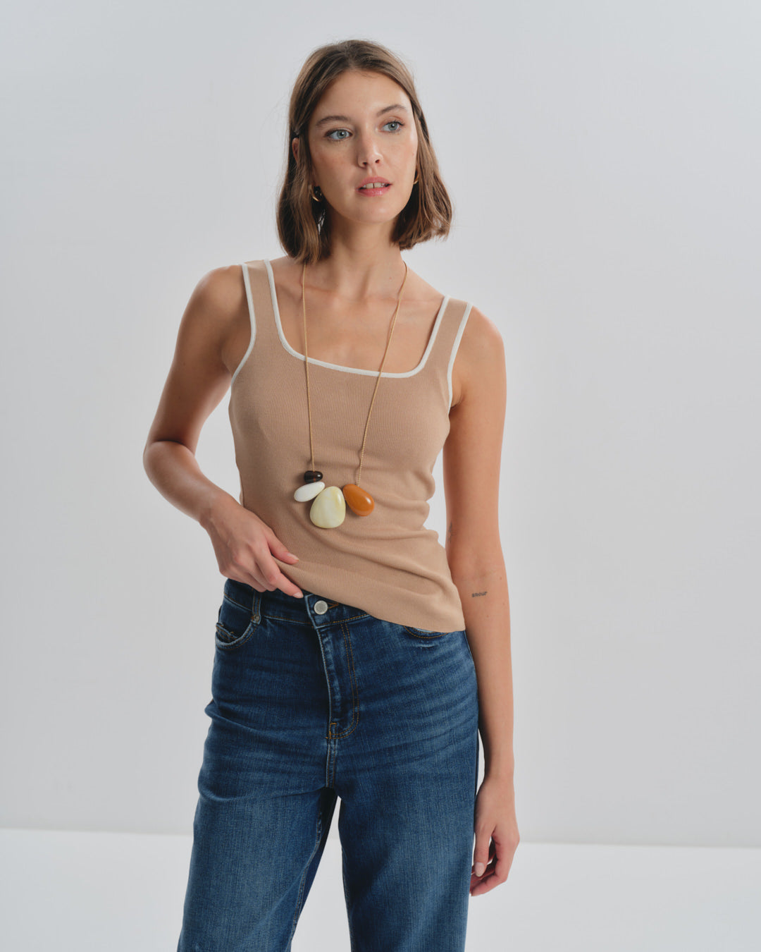 Top de tirantes tejido de punto, tacto suave, con bies en contraste