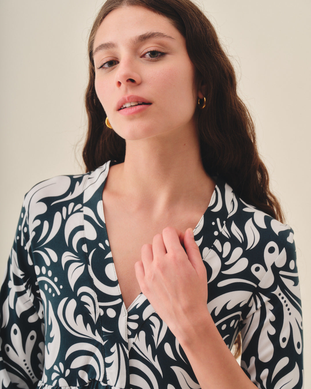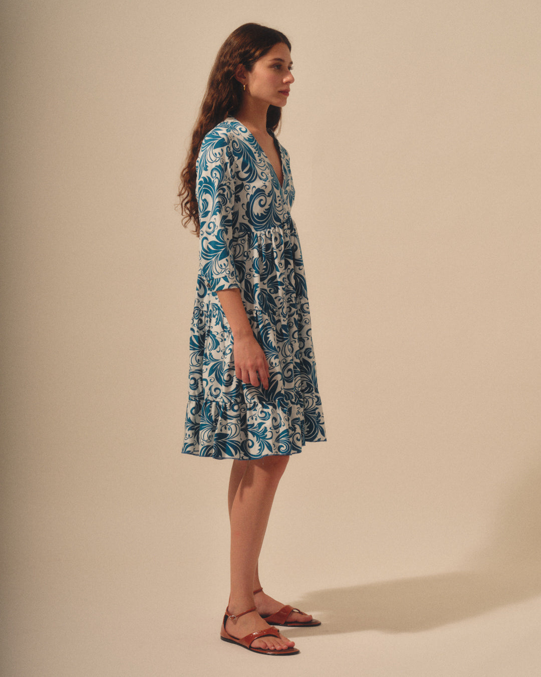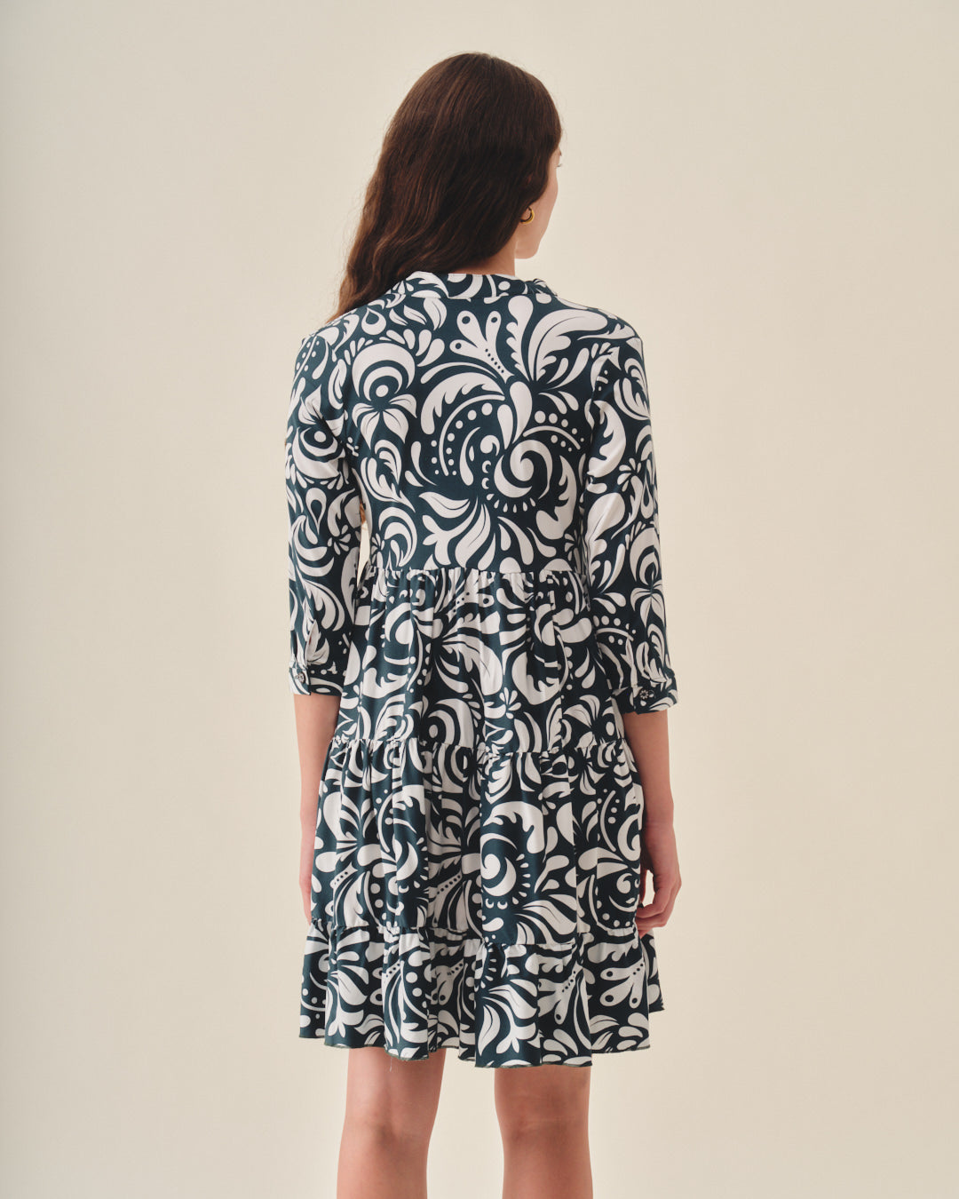 Vestido corto confeccionado en rayón estampado escote V.