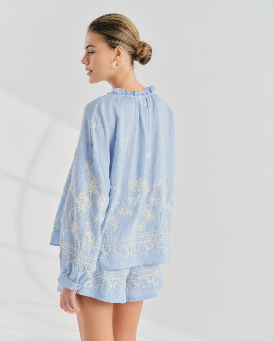 Zet de bermuda con blusa manga larga tela bordada